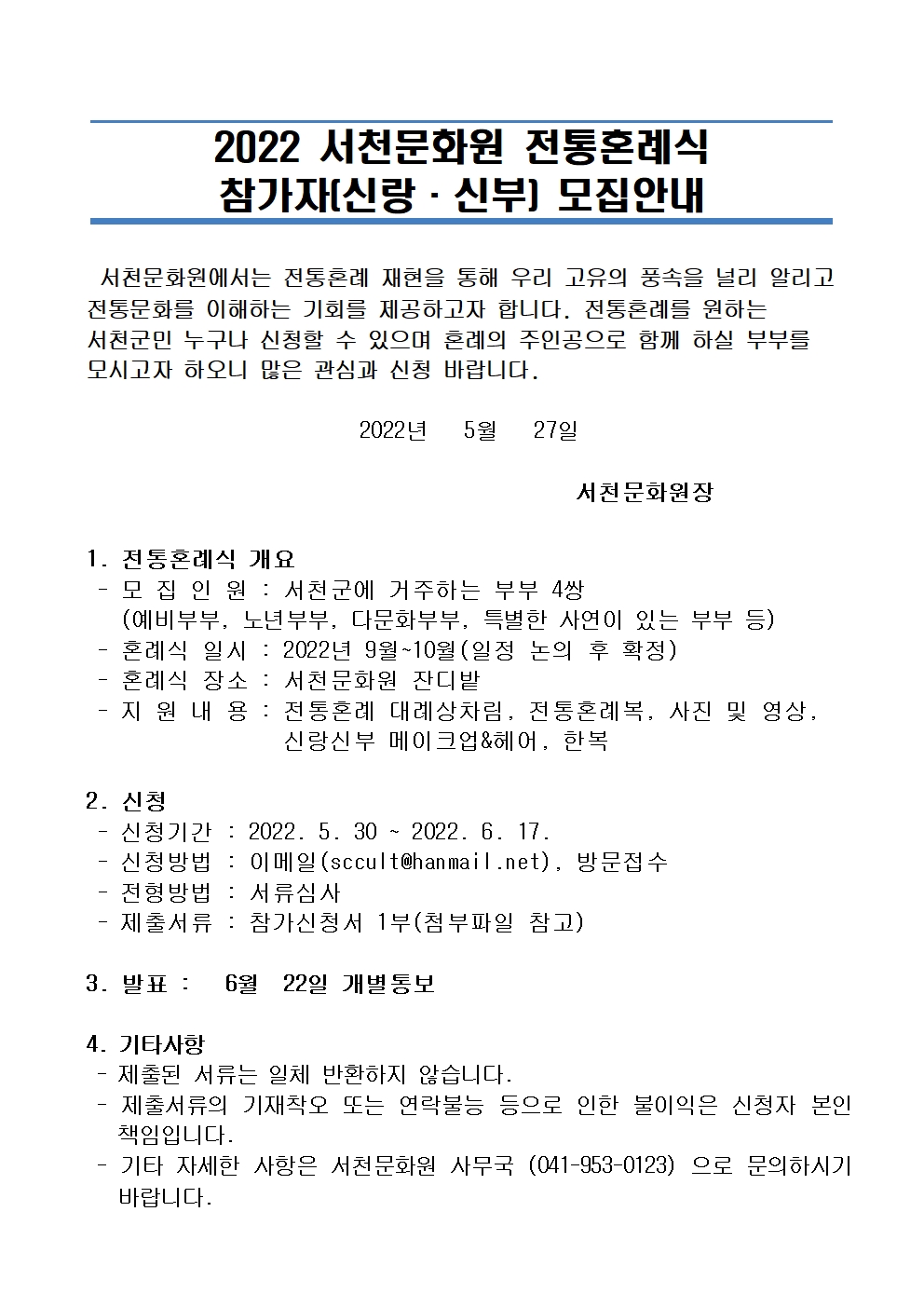 2022 전통혼례식 참가자 모집 글의 상세내용