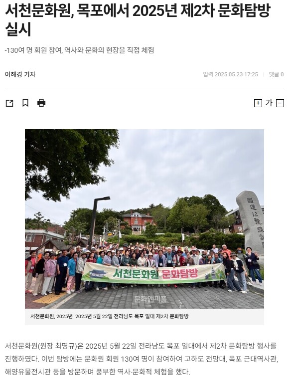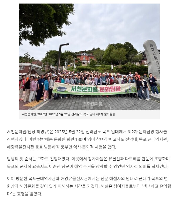 | 제목 | 서천문화원, 전남 목포에서 2025년 제2차 문화탐방 실시 | ||||