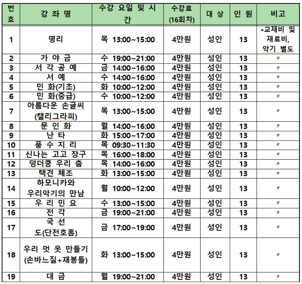 ※ 개설 강좌 및 자세한 내용은 첨부파일 확인 요망 |