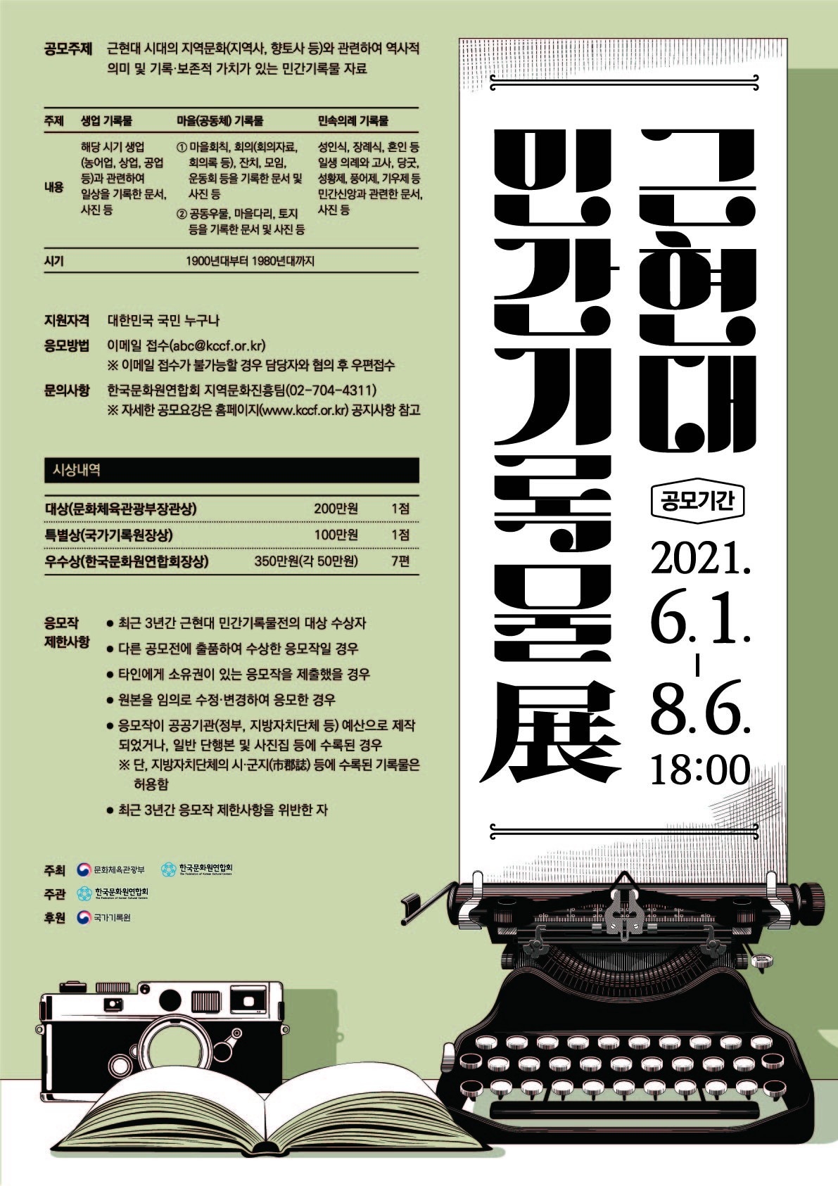 | 제목 | ▣ 2021년 제36회 전국향토문화공모전 및 제4회 근현대 민간기록물전 공고 | ||||