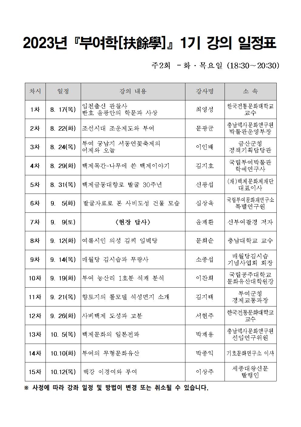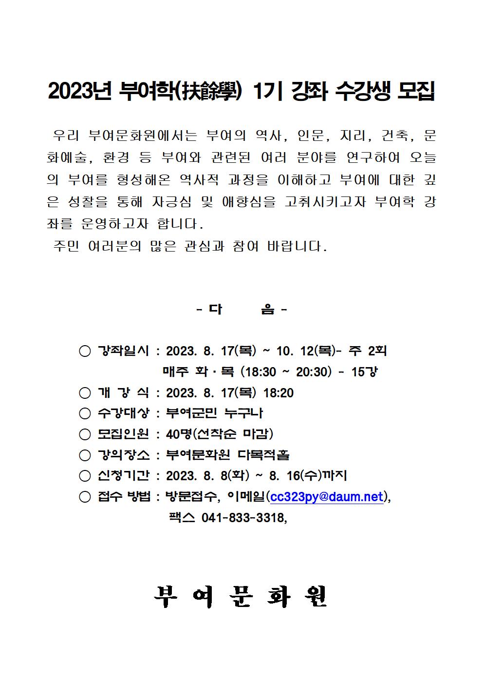 [공지[ 2023년 부여학〔扶餘學〕 강좌 1기 수강생 모집 안내