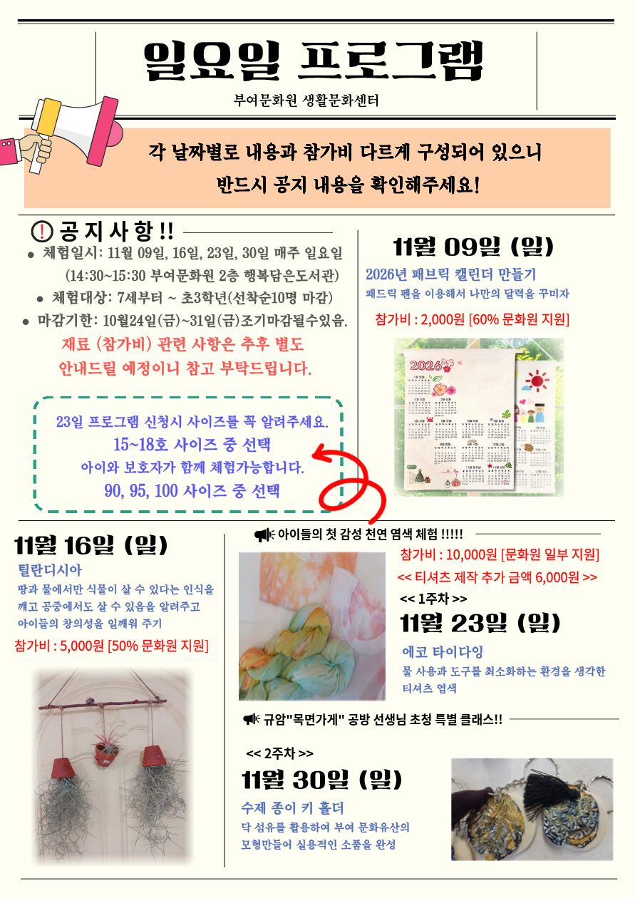 2025년 11월 체험 프로그램 안내 글의 상세내용