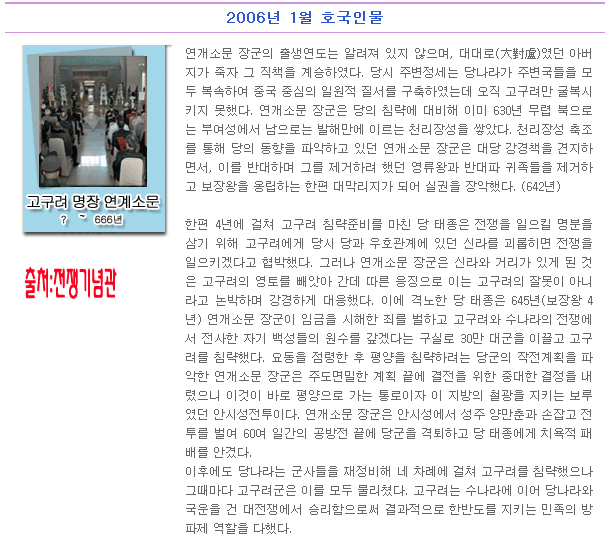 2006년 1월의 호국인물-연개소문 글의 상세내용