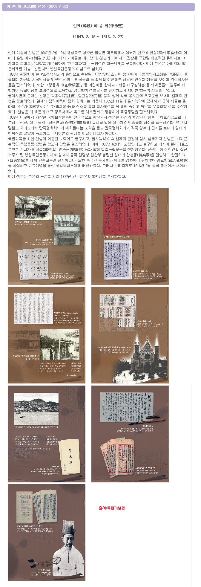 2006년 2월의 독립운동가-이승희 글의 상세내용