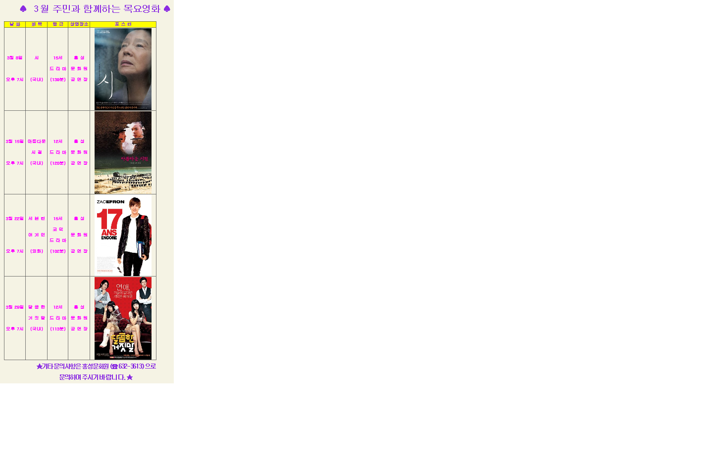 | 제목 | [영화상영] 2012 3월 주민과 함께하는 목요영화 안내 | ||||