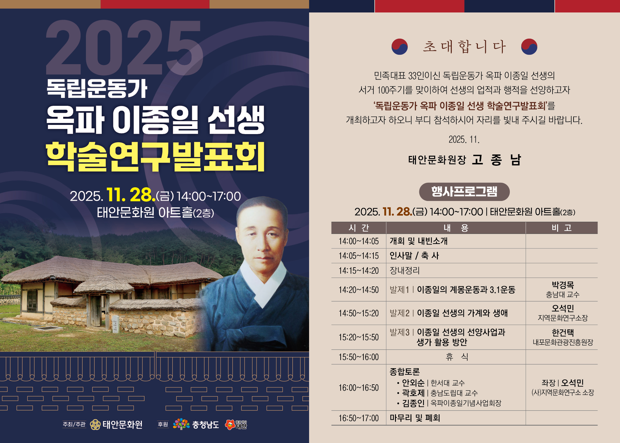 2025 독립운동가 옥파 이종일 선생 학술연구발표회 글의 상세내용