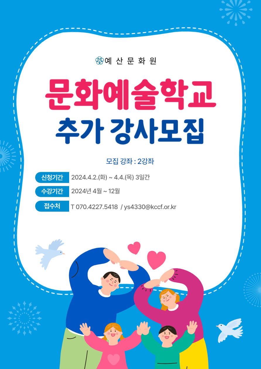 | 제목 | 2024 문화예술학교 추가강사모집 | ||||