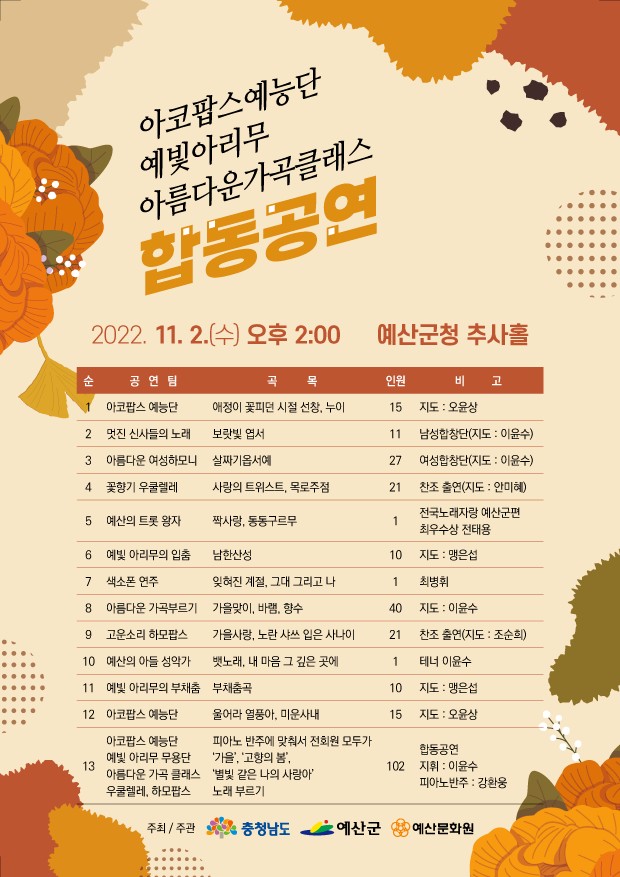 예산문화원 생활문화 동아리 합동공연을 실시합니다.