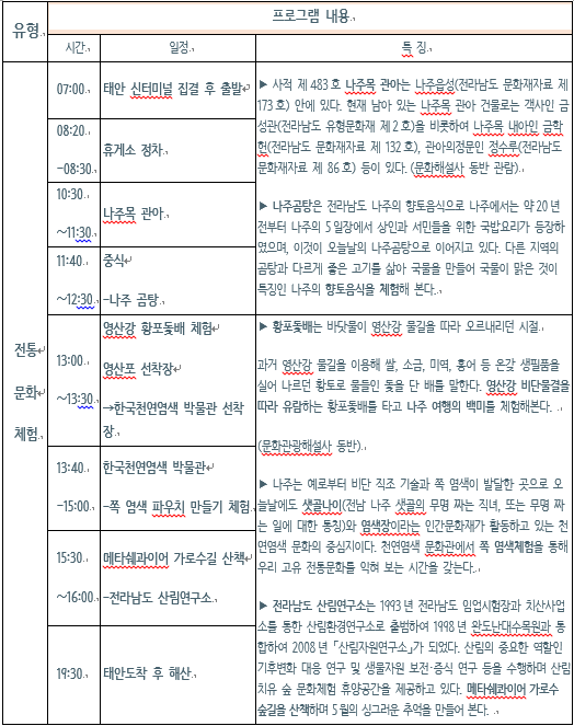 ▣ 장 소 : 나주목 관아, 영산강 황포돛배, 한국천연염색박물관, 전라남도 산림자원연구소
