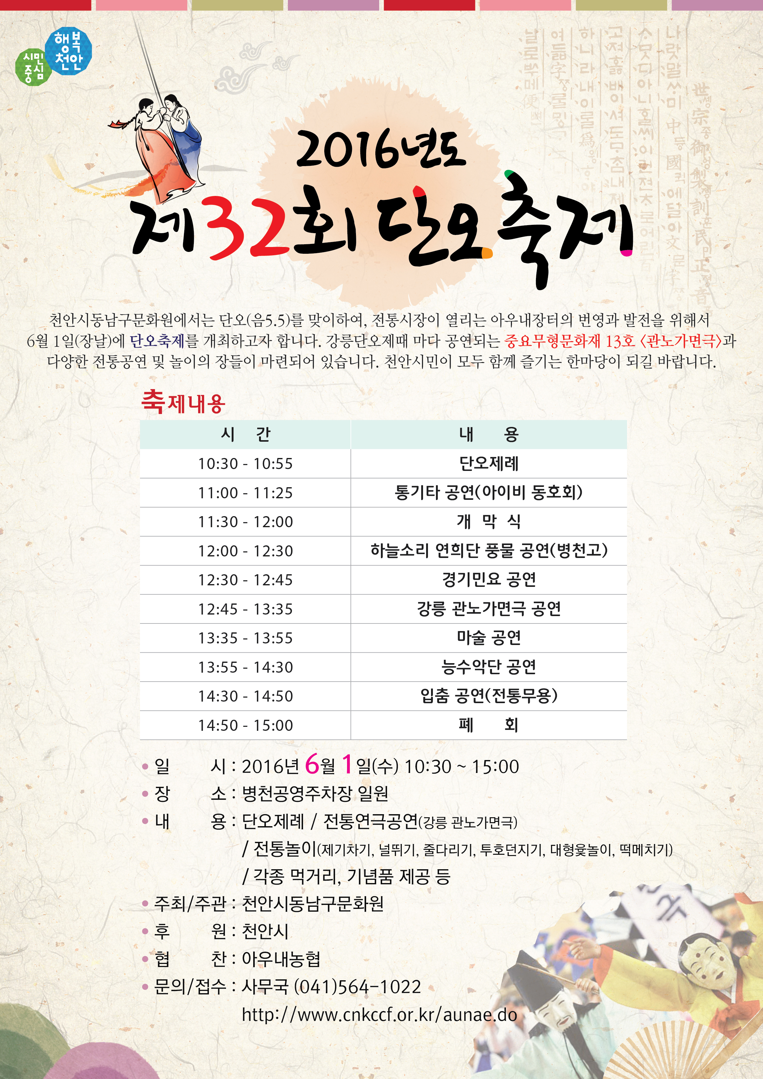 2016년도 제32회 단오축제 행사 알림 글의 상세내용