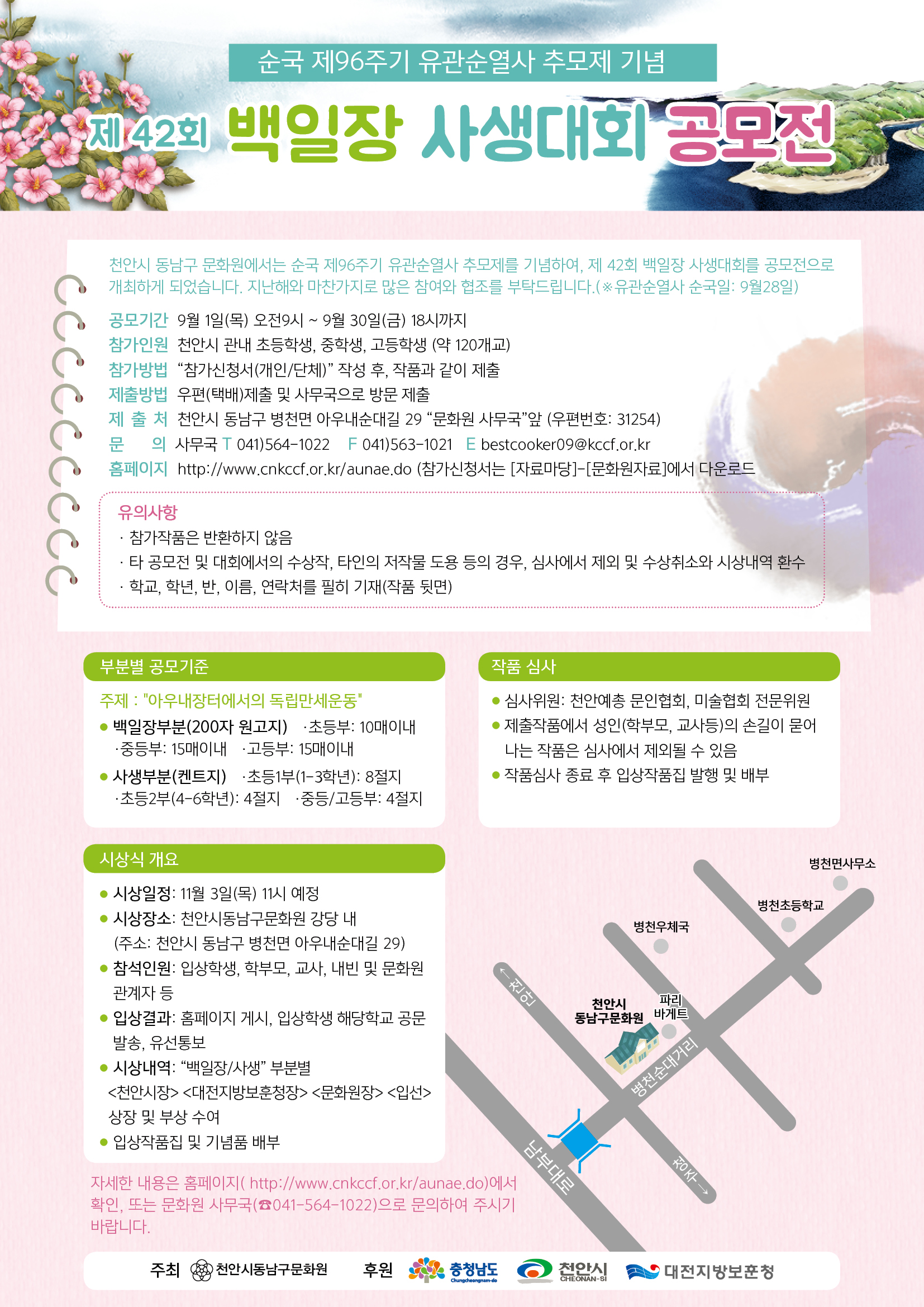 제42회 백일장 사생대회 공모전 공지 글의 상세내용