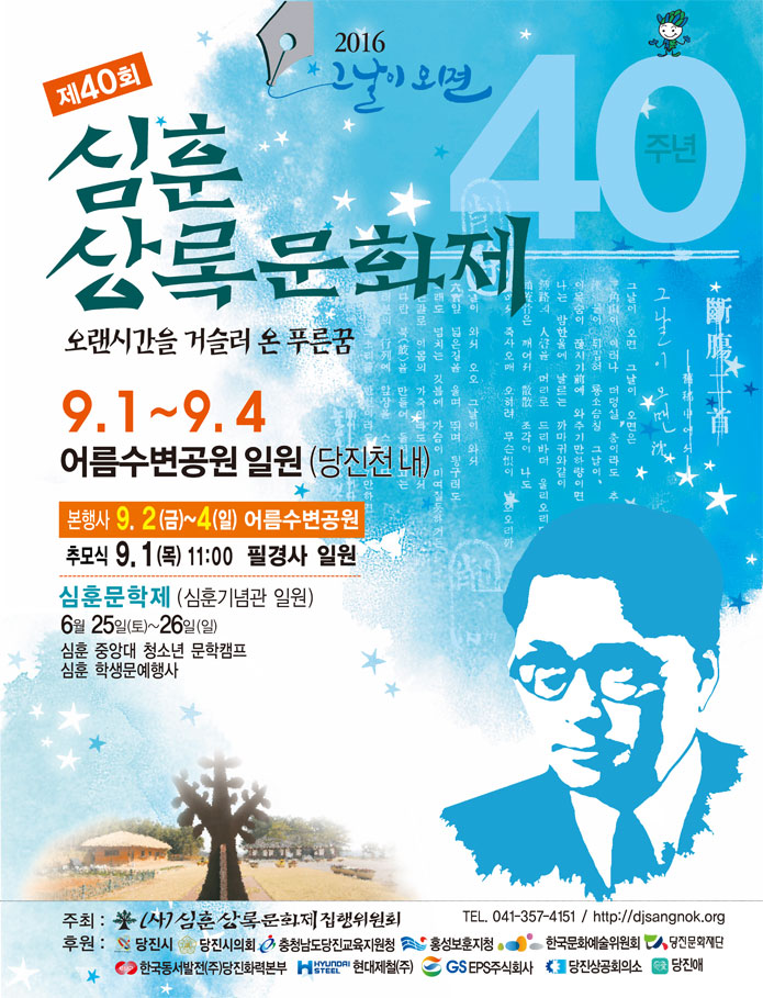 『 제40회 심훈상록문화제 』글의 상세내용을 확인하는 표로 제목, 작성자, 등록일, 조회, 첨부, 내용으로 나뉘어 설명합니다.