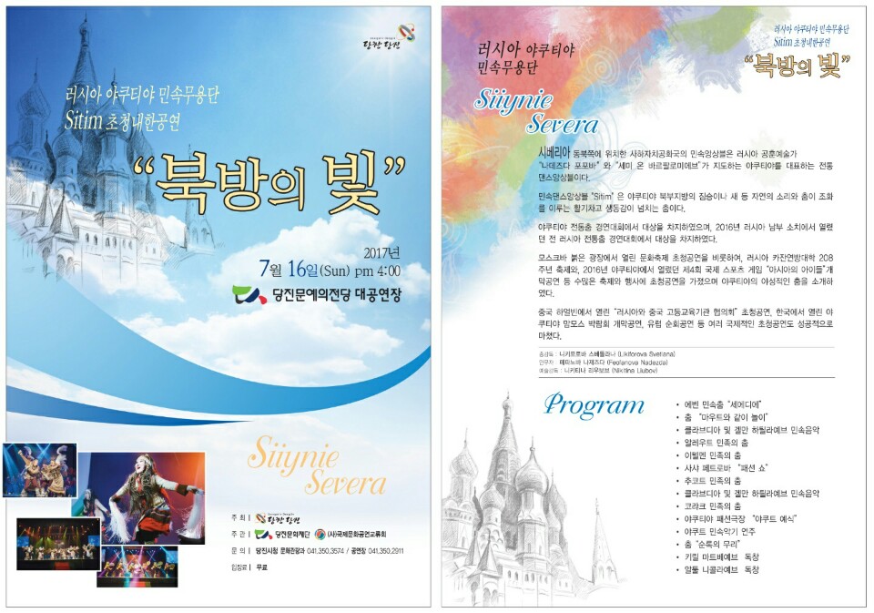 | 제목 | 러시아 야쿠티야민속무용단 초청 공연에 초대합니다. | ||||