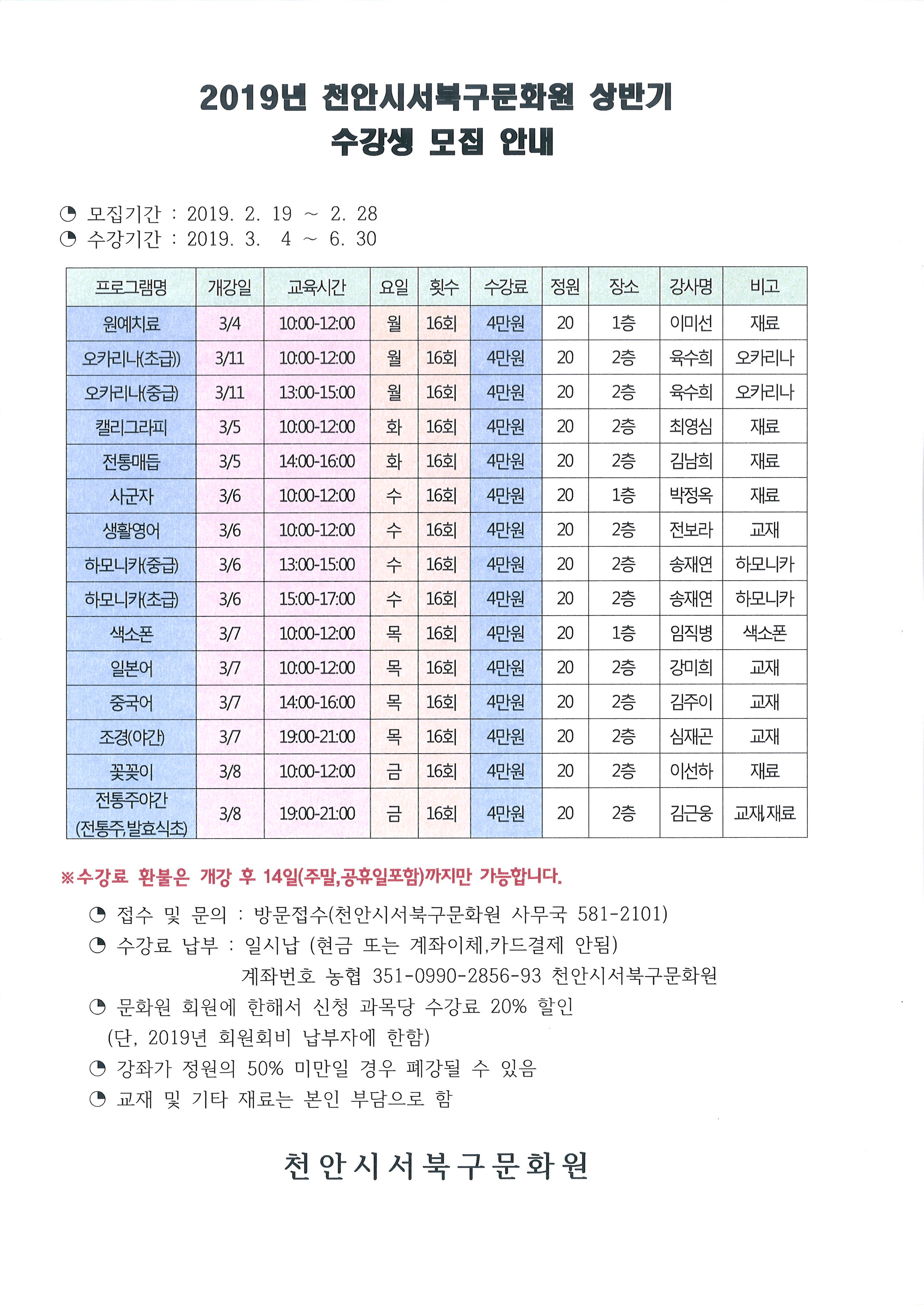 수강생모집-2019상반기문화교육프로그램 글의 상세내용