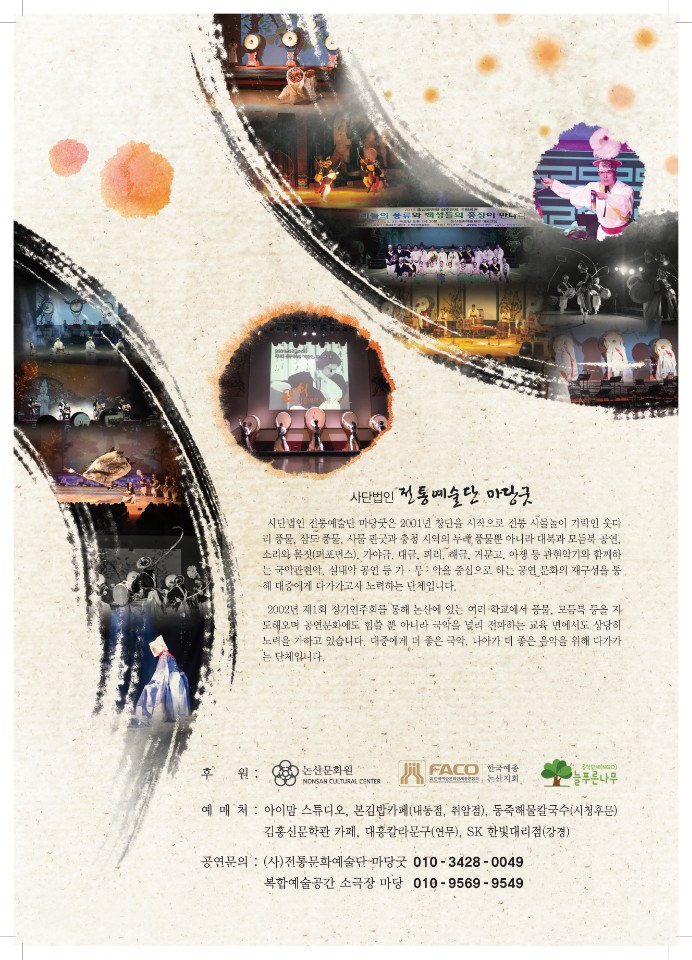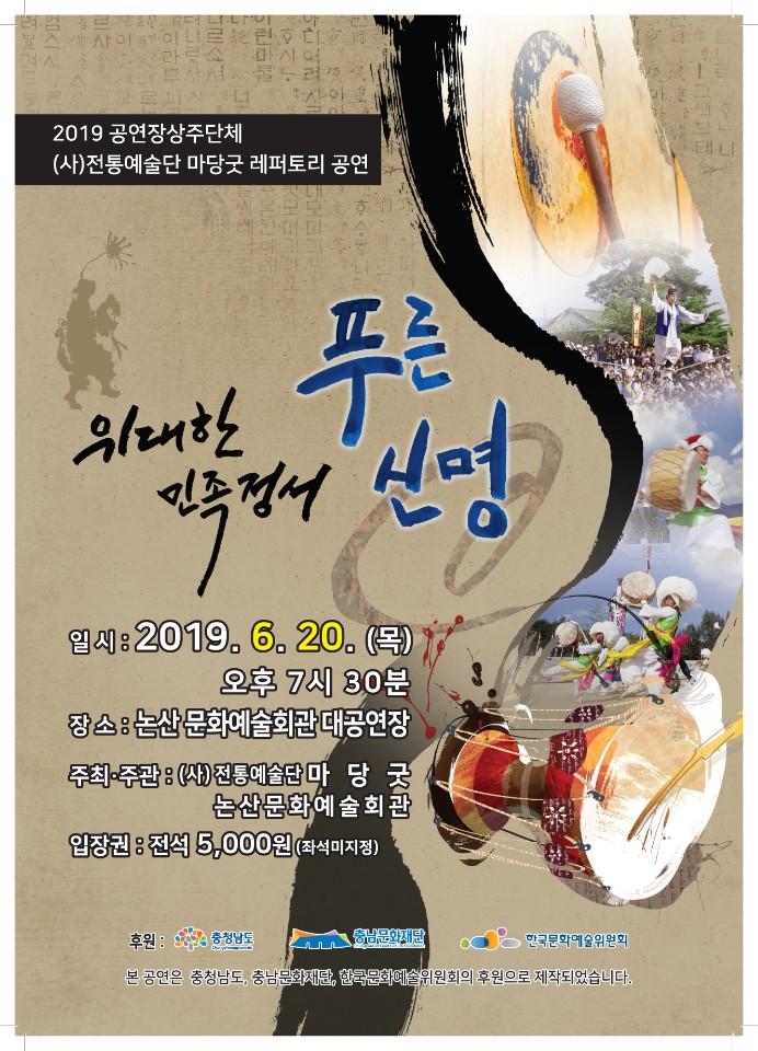 (사)전통예술단 마당굿 공연 - 위대한 민족정서 푸른신명 글의 상세내용
