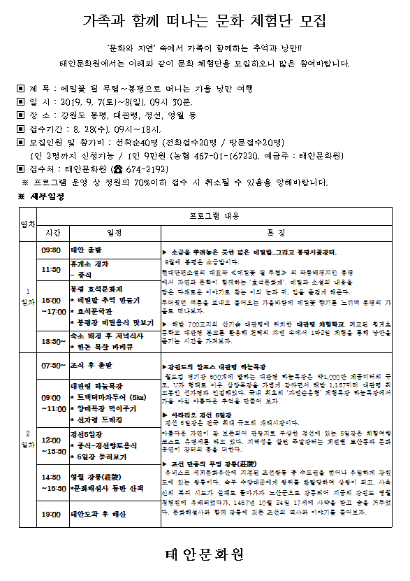 2019년 『가족문화체험 4차』 참가 안내 글의 상세내용