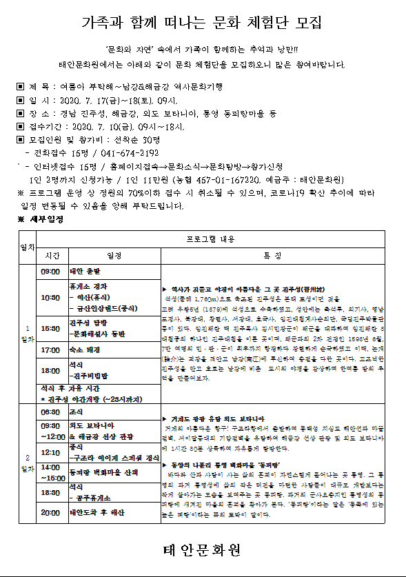가족문화체험 2차 참가 안내 글의 상세내용