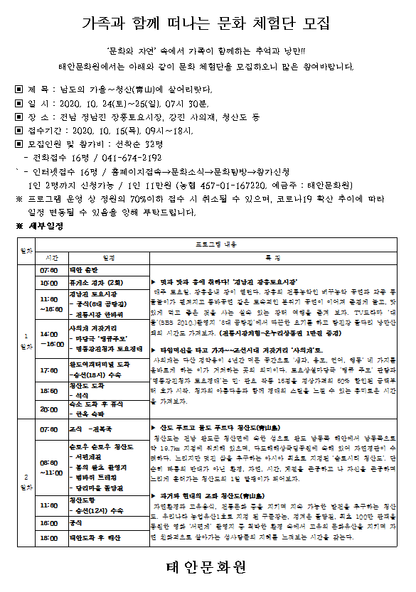 가족문화체험(3차) 참가 안내 글의 상세내용