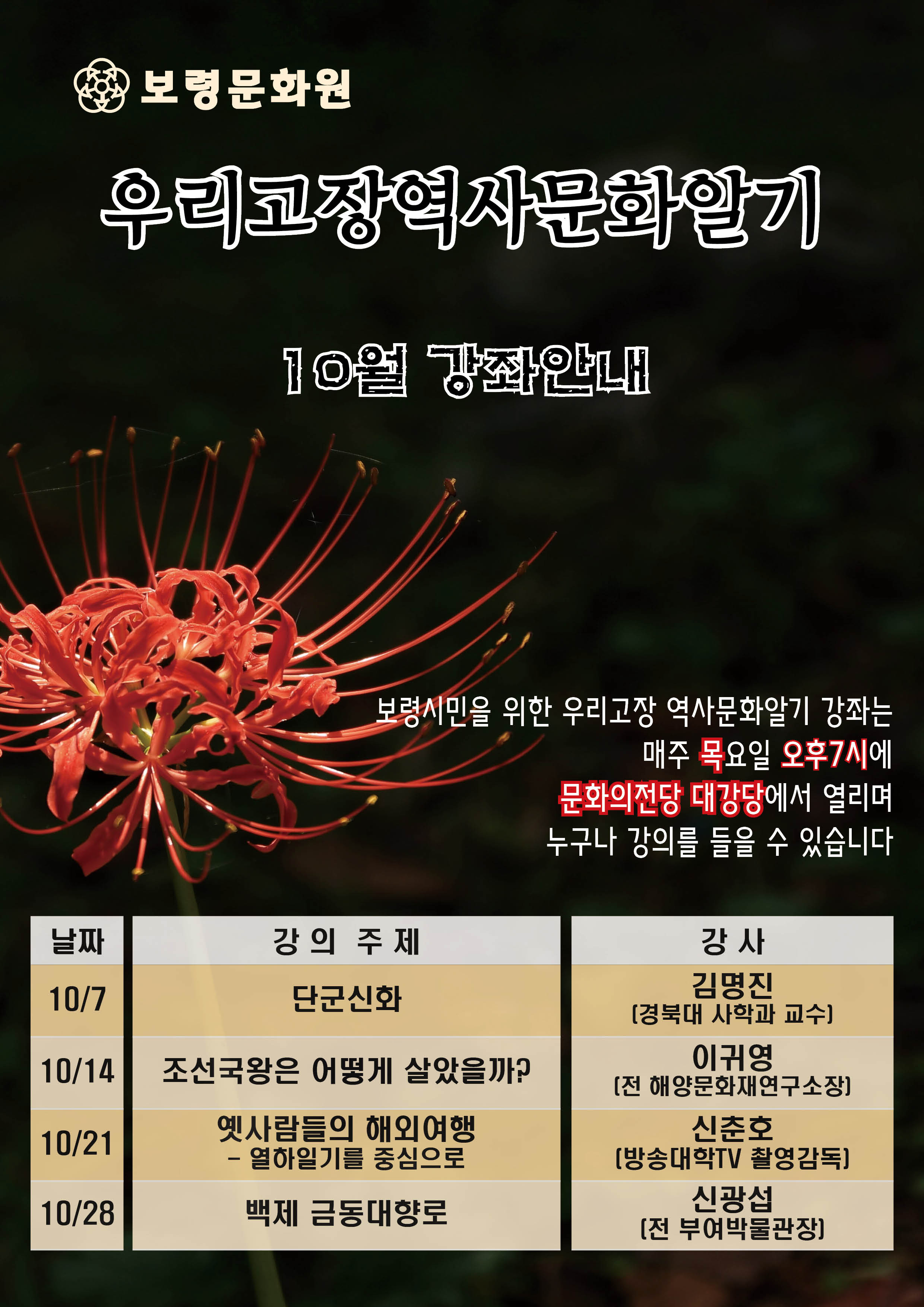 【2021 우리고장 역사 문화 알기 10월 강좌 안내】