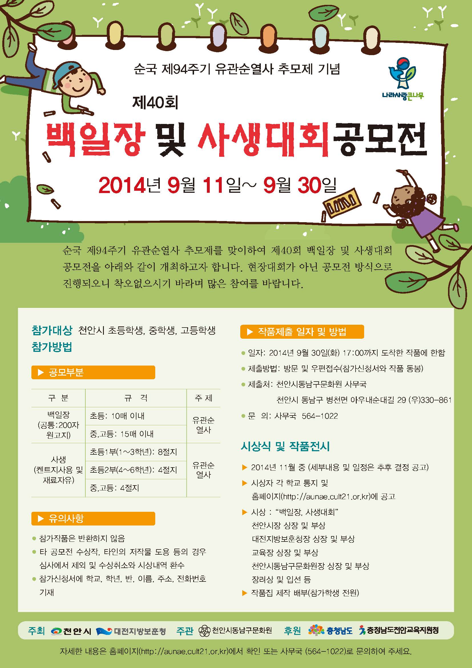 | 제목 | 순국 제94주기 유관순열사 추모제 기념, 제40회 백일장 및 사생대회 공모전 | ||||