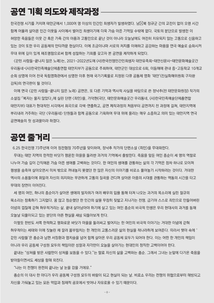 [공연안내] 끝나지 않은 노래, 갇힌 사람들 글의 상세내용