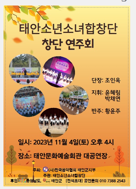 [공연안내]태안소년소녀합창단 창단 연주회 글의 상세내용