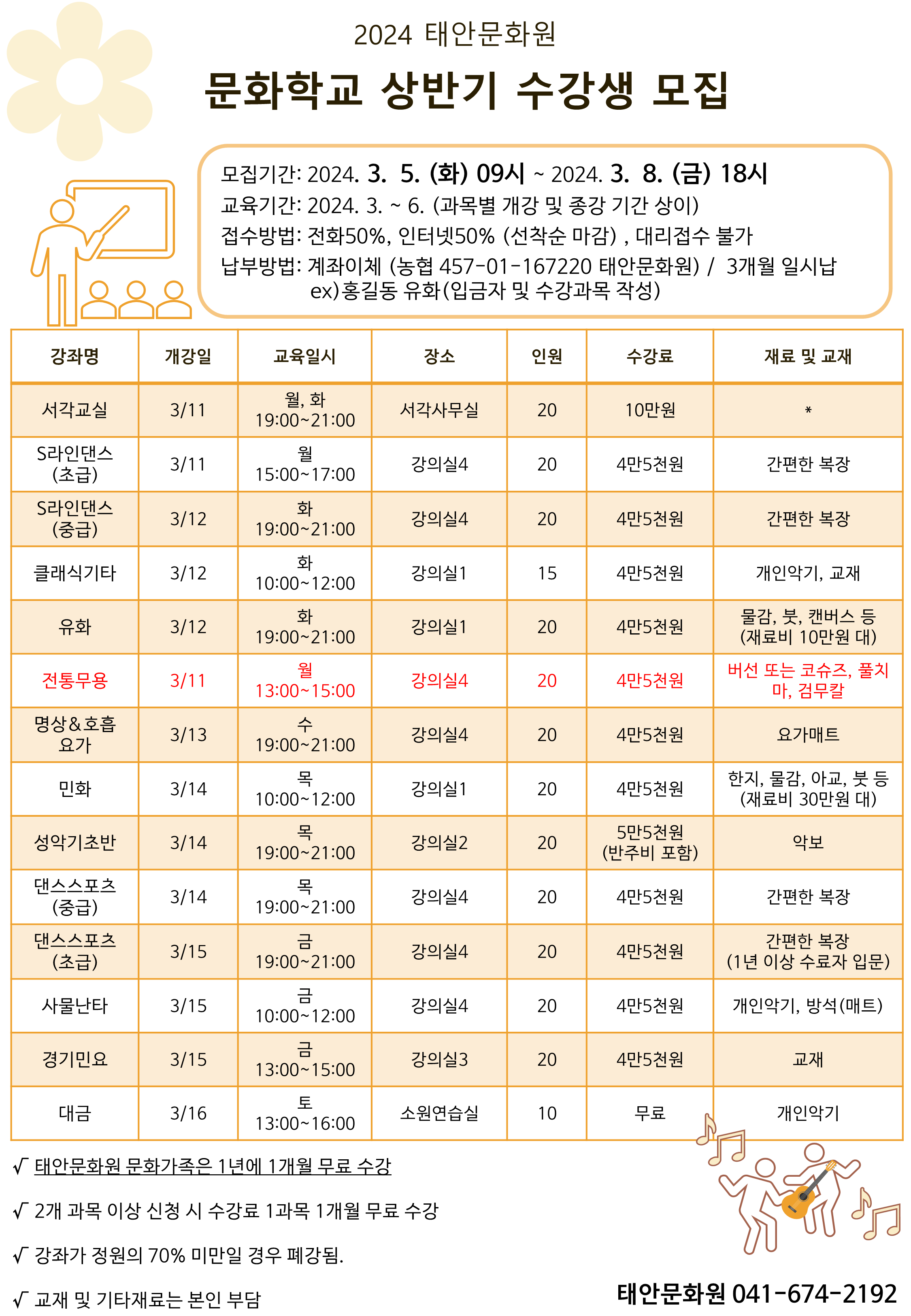 ※ 전통무용 수업이 수요일 14시~16시에서
