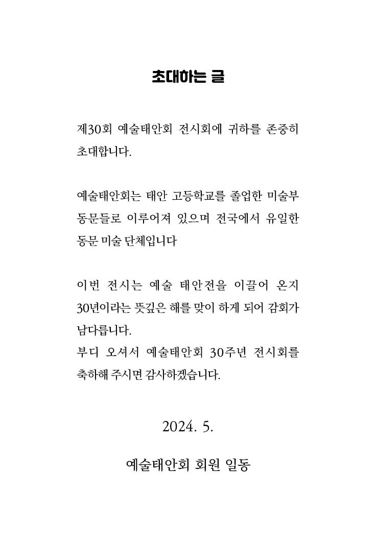 [전시안내] 제30회 예술태안전 글의 상세내용