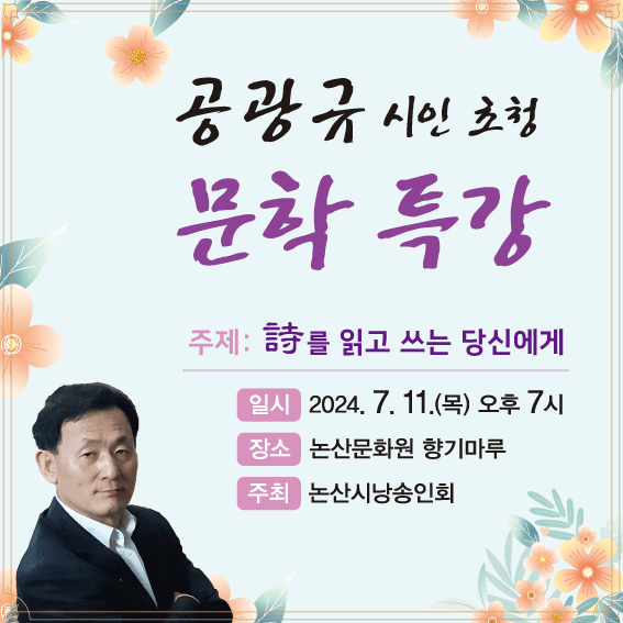 『 공광규 시인 초청 특강 』글의 상세내용을 확인하는 표로 제목, 작성자, 등록일, 조회, 첨부, 내용으로 나뉘어 설명합니다.