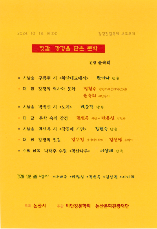 『 젓갈, 강경을 담은 문학 』글의 상세내용을 확인하는 표로 제목, 작성자, 등록일, 조회, 첨부, 내용으로 나뉘어 설명합니다.