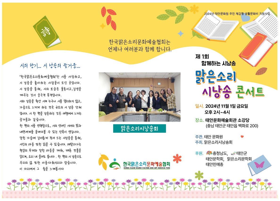 [공연안내]맑은소리시낭송콘서트 글의 상세내용