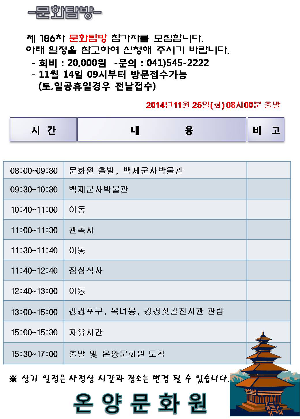 11월 아산시민 문화탐방 참가자 모집 글의 상세내용