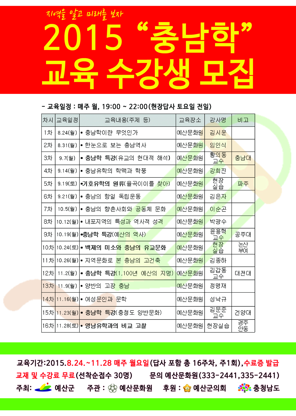 2015 충남학 교육 수강생모집