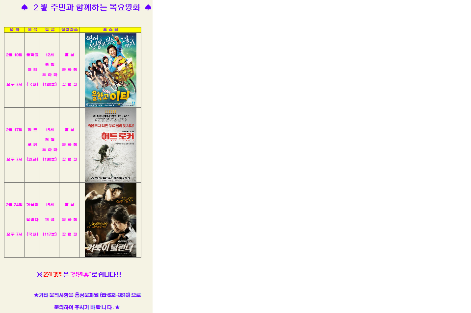 | 제목 | 2월 주민과함께하는 목요영화 | ||||