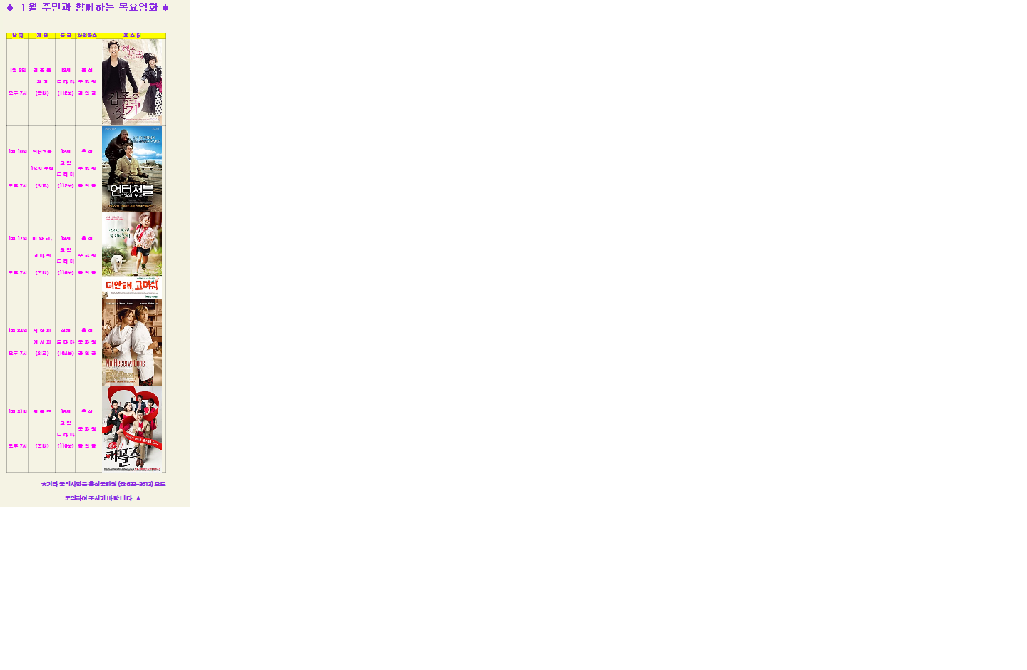 | 제목 | [영화상영] 2013 1월 주민과 함께하는 목요영화 안내 | ||||