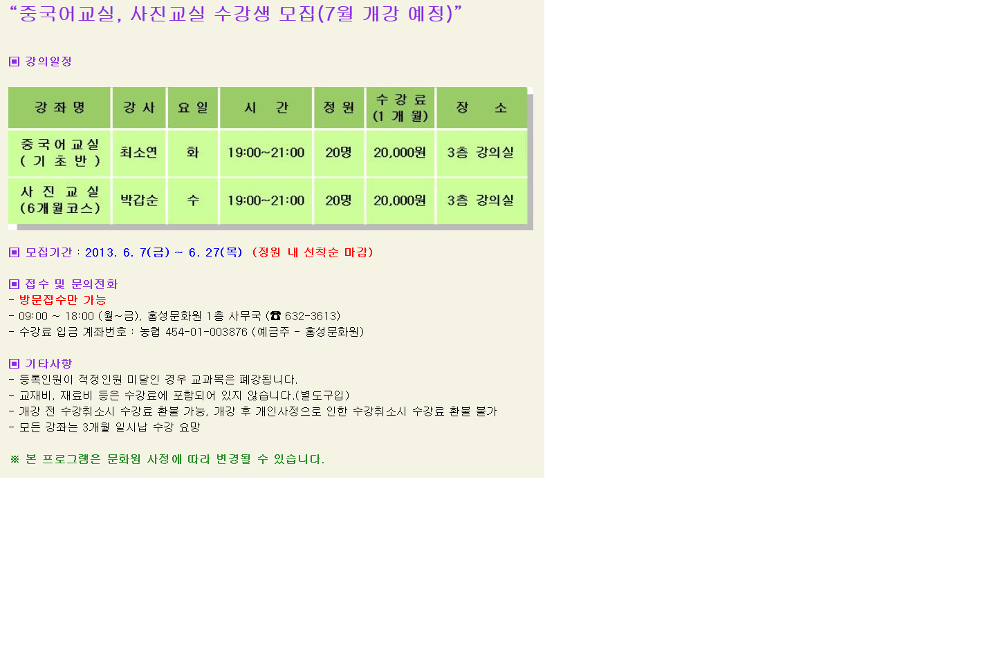 2013 중국어,사진교실수강생모집(7월개강예정).hwp