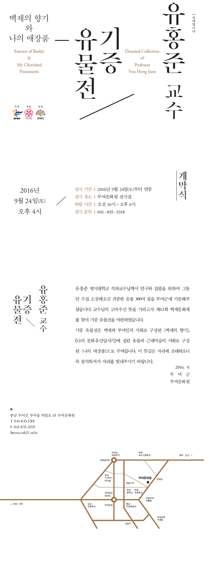 『 유홍준 교수 기증 유물전 개최 』글의 상세내용을 확인하는 표로 제목, 작성자, 등록일, 조회, 첨부, 내용으로 나뉘어 설명합니다.