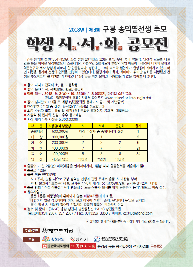 | 제목 | 제3회 구봉송익필선생 추모 학생 시서화 공모전 | ||||