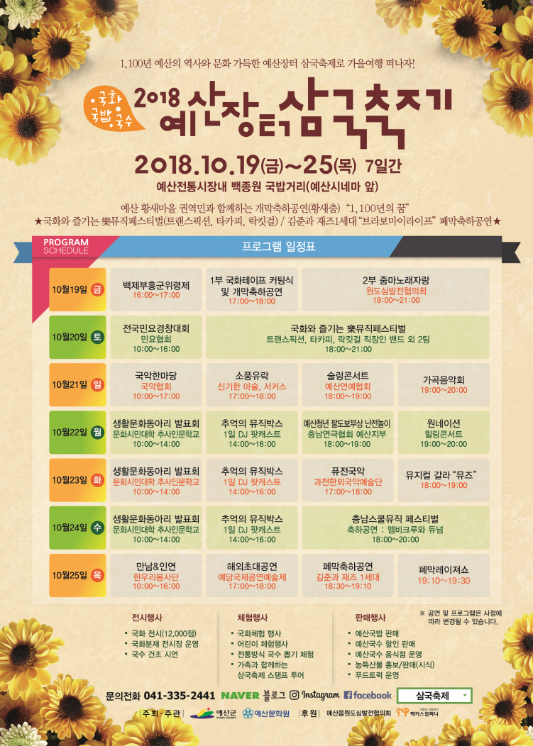 | 제목 | 2018 제2회 예산장터 삼국축제 안내 | ||||