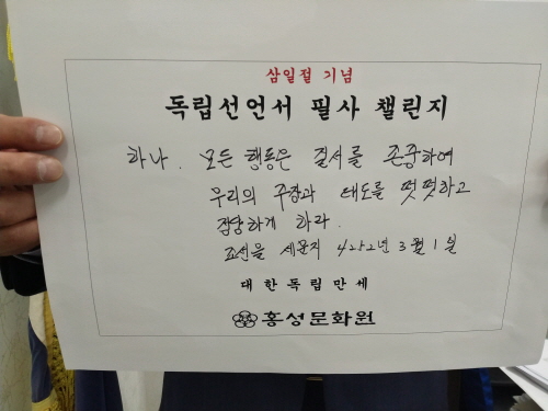 홍성문화원장, 3.1 독립선언서 필사 챌린지 캠페인 참여