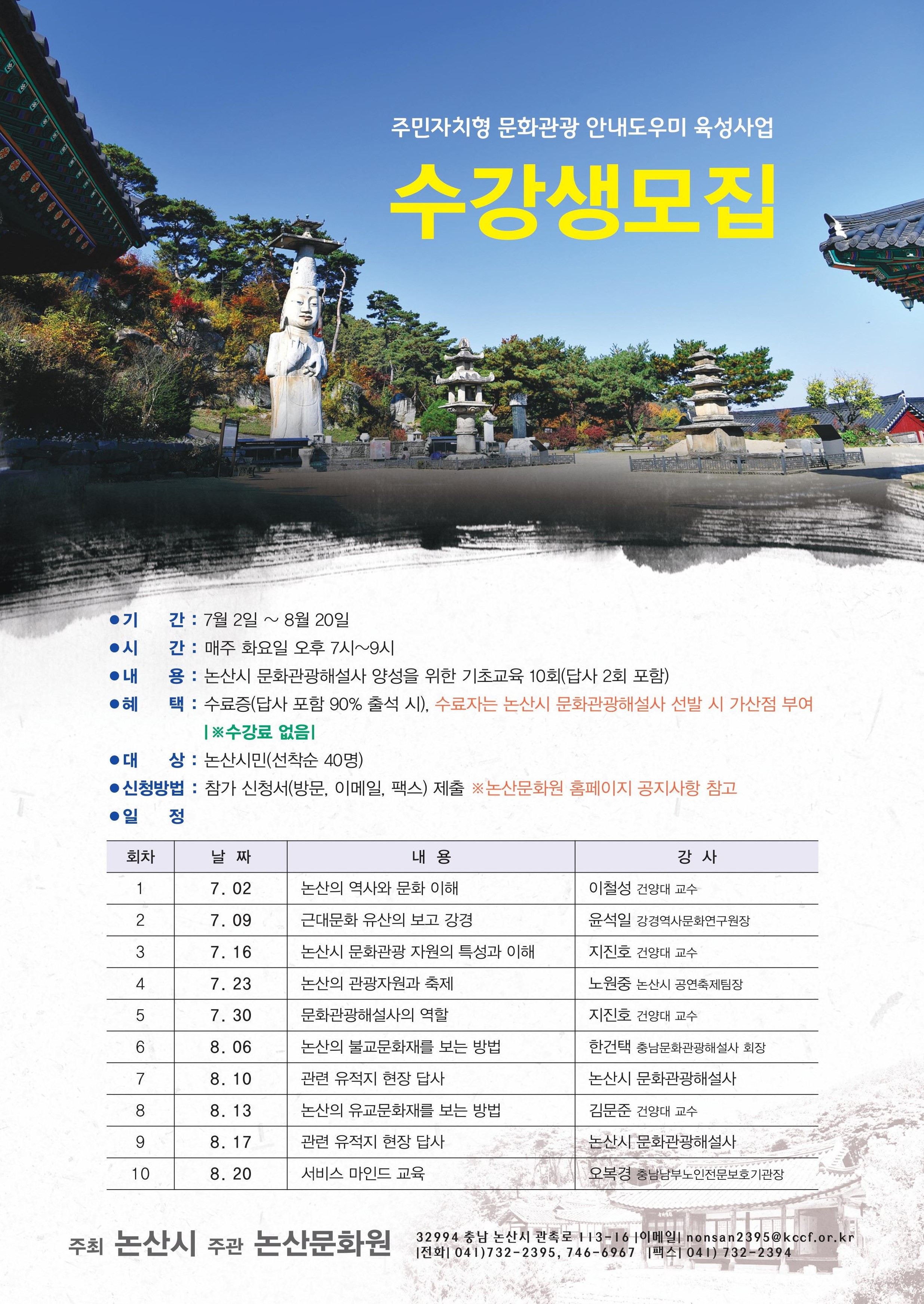 『 주민자치형 문화관광 안내도우미 수강생 모집 안내 』글의 상세내용을 확인하는 표로 제목, 작성자, 등록일, 조회, 첨부, 내용으로 나뉘어 설명합니다.