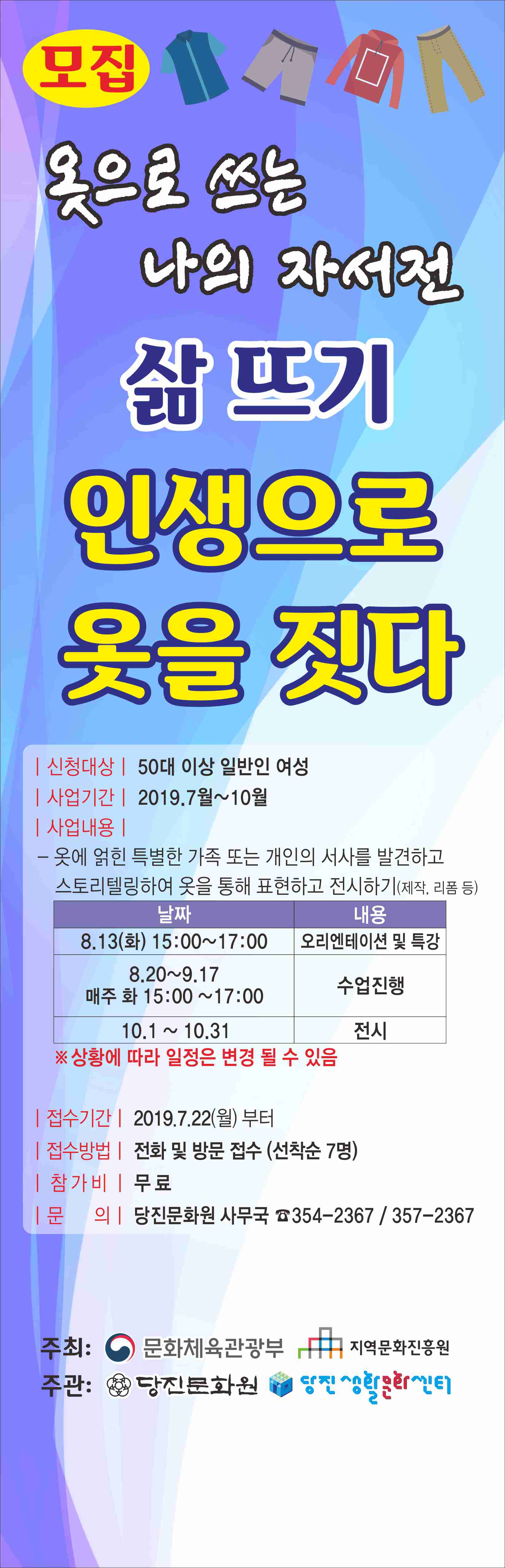 | 제목 | 삶 뜨기: 인생으로 옷을짓다 - 참여자를 모집합니다 | ||||