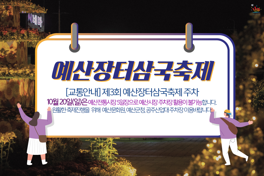 『 [교통안내] 제3회 예산장터 삼국축제 주차관련 』글의 상세내용을 확인하는 표로 제목, 작성자, 등록일, 조회, 첨부, 내용으로 나뉘어 설명합니다.
