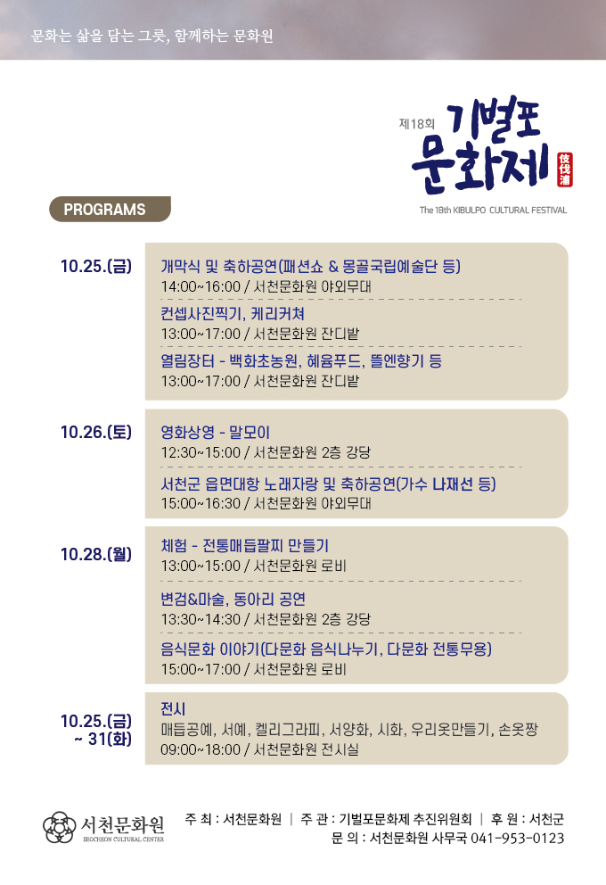 | 작성자 | 서천문화원 | 등록일 | 2019-10-22 | 조회 | 951 |