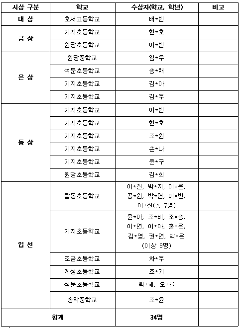 본 대회와 관련하여 심사결과 아래와 같이 입상자가 선정되어 이를 공지합니다.