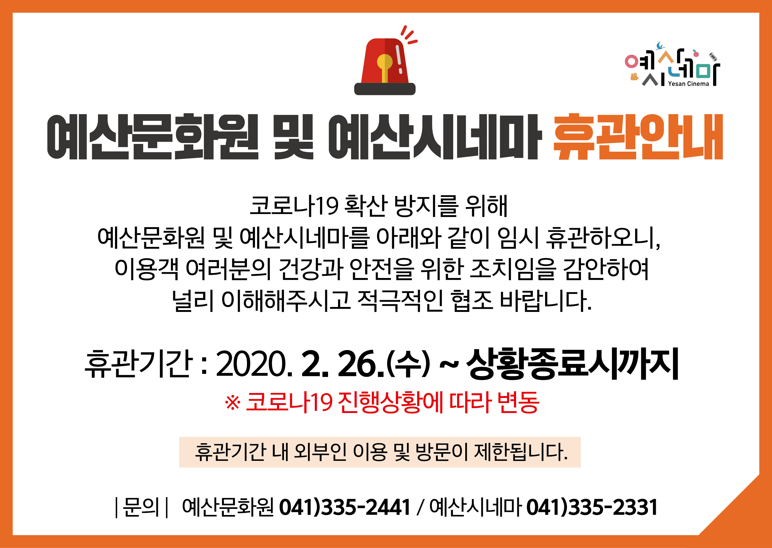 『 예산문화원 및 예산시네마 휴관안내 』글의 상세내용을 확인하는 표로 제목, 작성자, 등록일, 조회, 첨부, 내용으로 나뉘어 설명합니다.