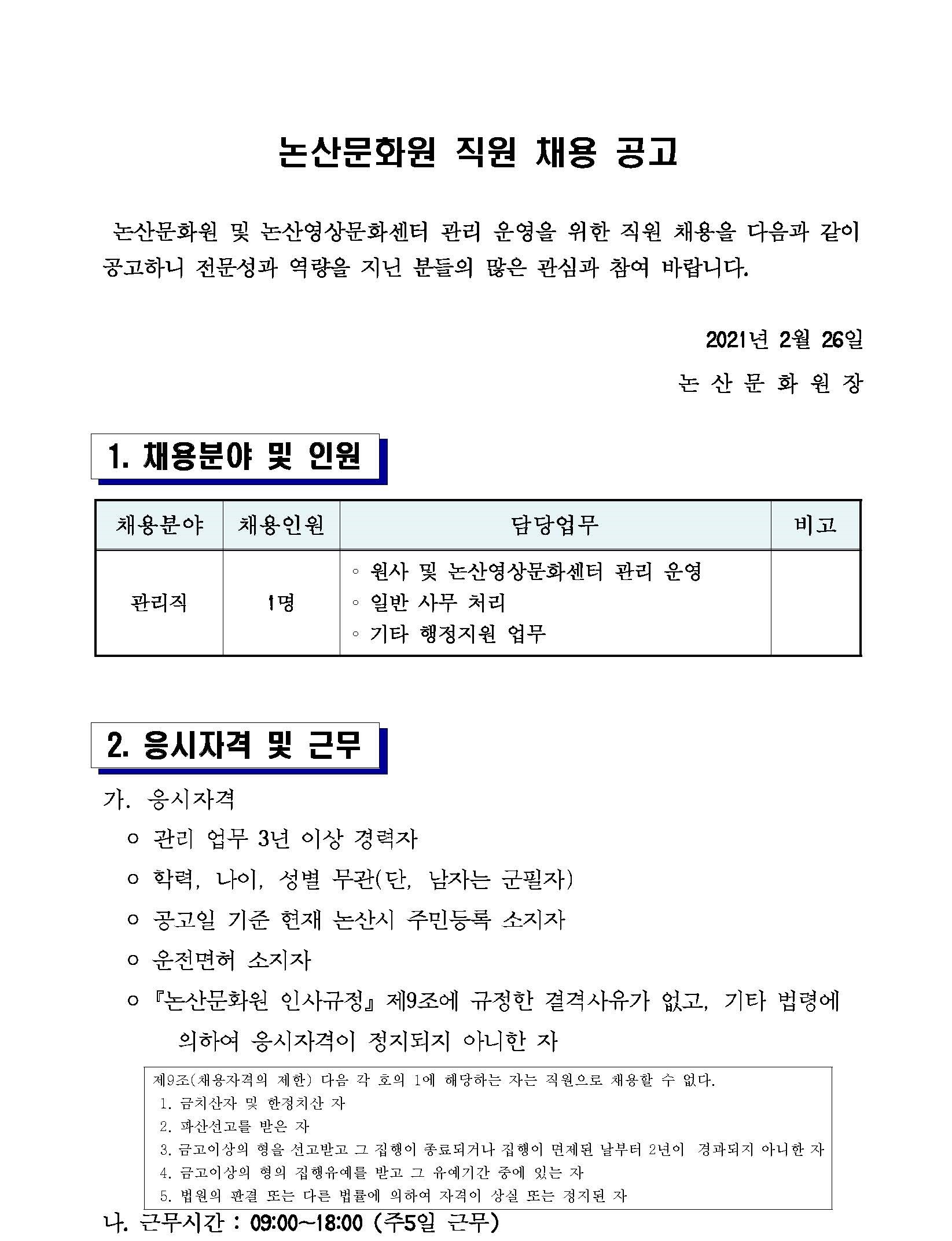 | 제목 | 논산문화원 직원 공개 채용 공고 | ||||