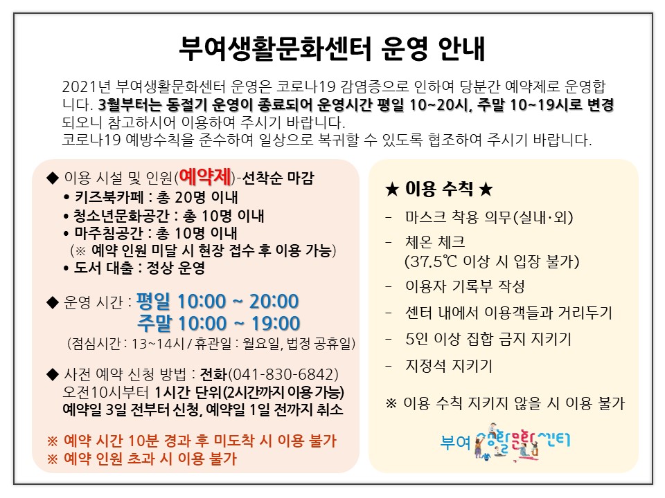 『 부여생활문화센터 운영 안내 』글의 상세내용을 확인하는 표로 제목, 작성자, 등록일, 조회, 첨부, 내용으로 나뉘어 설명합니다.