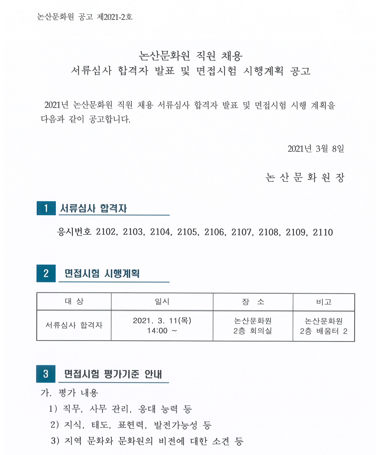 『 논산문화원 직원 채용 서류 심사 합격자 발표 』글의 상세내용을 확인하는 표로 제목, 작성자, 등록일, 조회, 첨부, 내용으로 나뉘어 설명합니다.