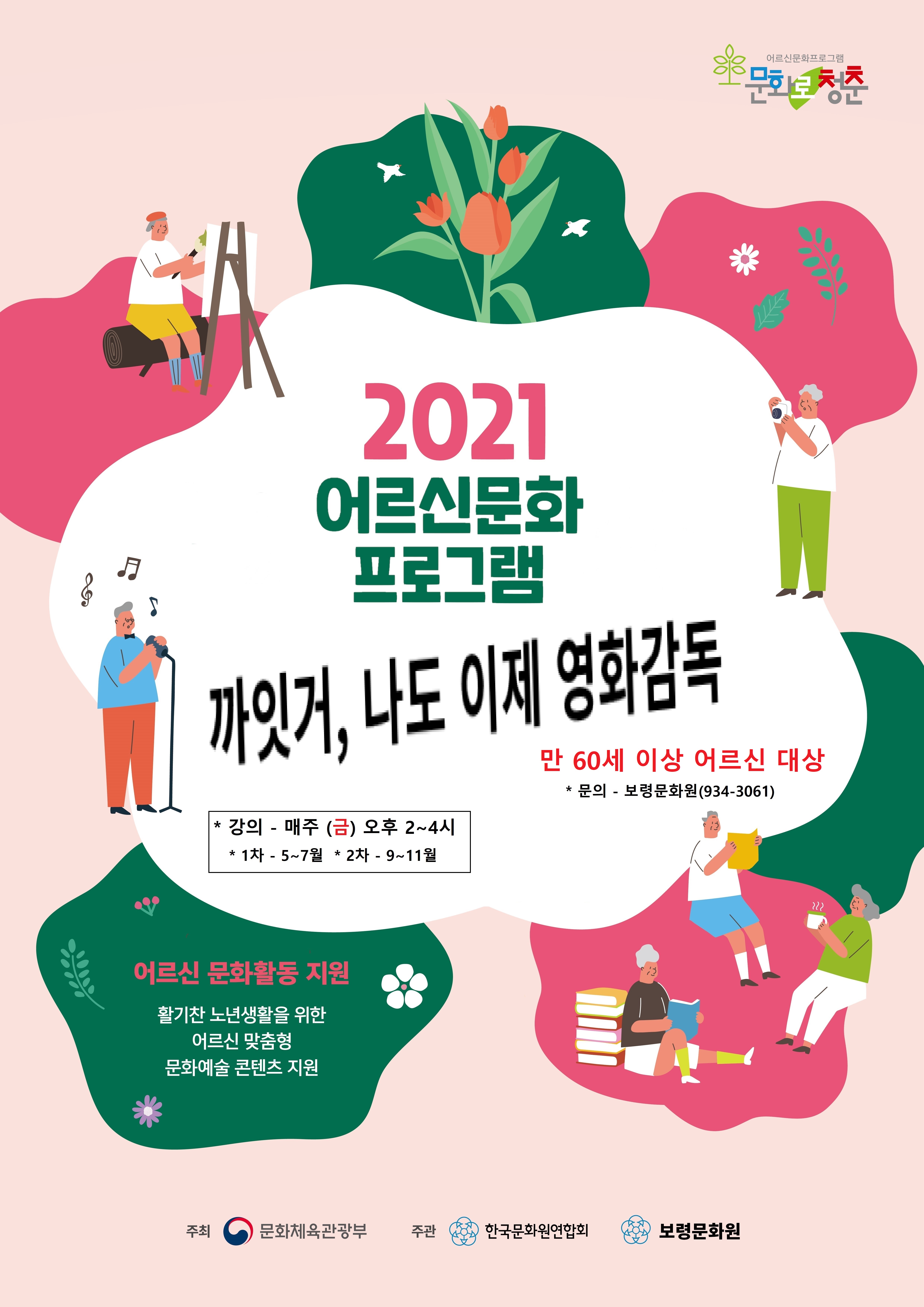 | 제목 | ■ '까잇거, 나도 이제 영화감독' - 어르신 문화프로그램 참가자 모집 안내 | ||||